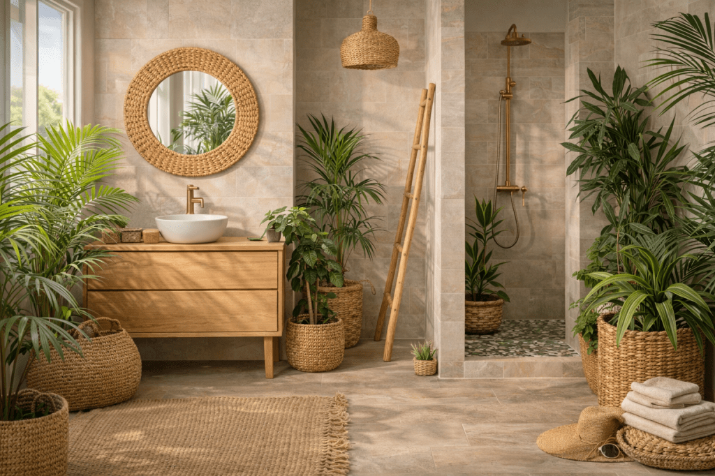 If you’d like more guidance and inspiration, you may also enjoy our article on how to create a tropical bathroom without living near the beach here.